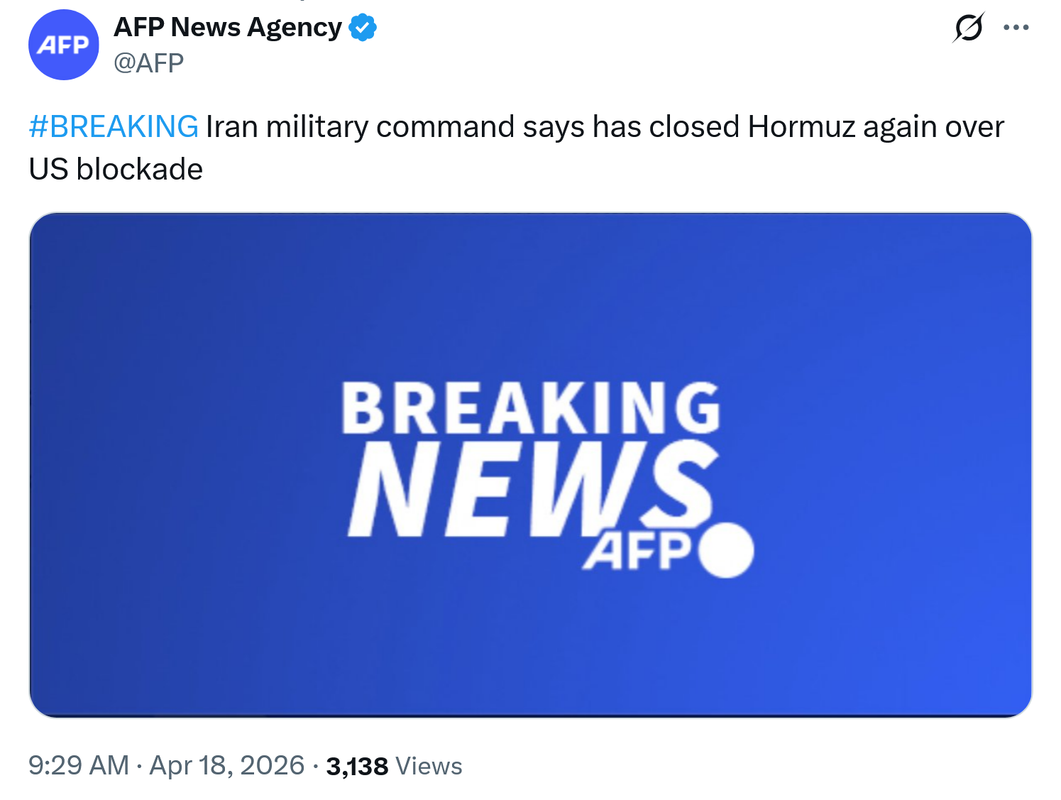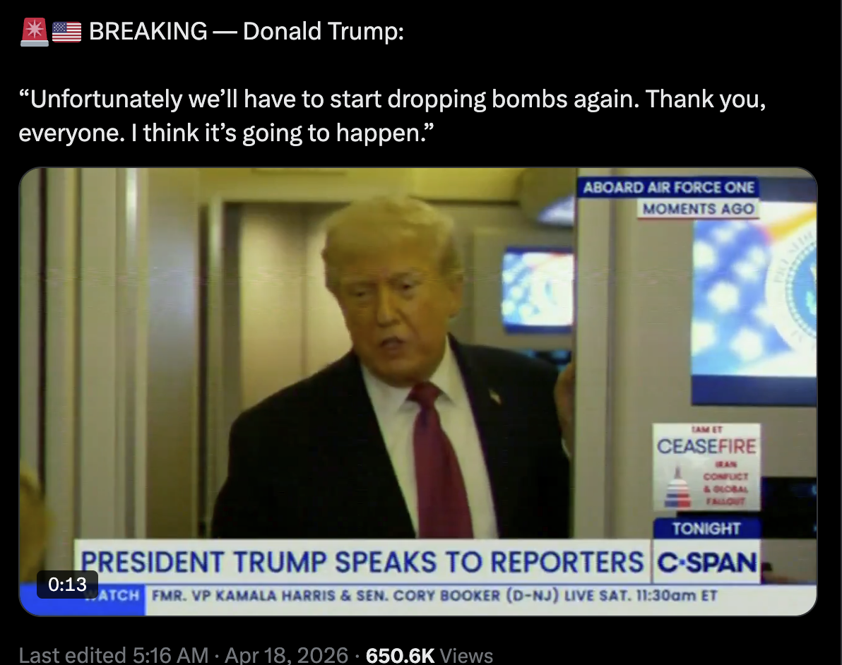 >What’s stopping the US from pretending to lift the blockade for a few weeks to let stuck ships through for market relief, and then going back to business as usual? It seems like Iran doesn’t even plan to keep Hormuz closed forever.