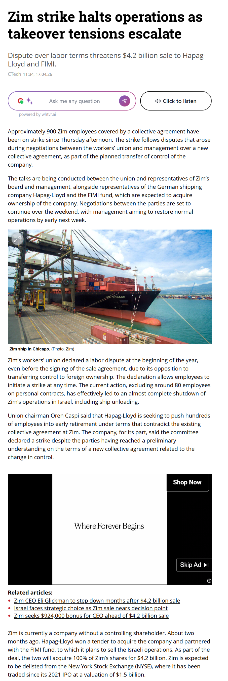 The current action has effectively led to an almost complete shutdown of Zim’s operations in Israel, including ship unloading.