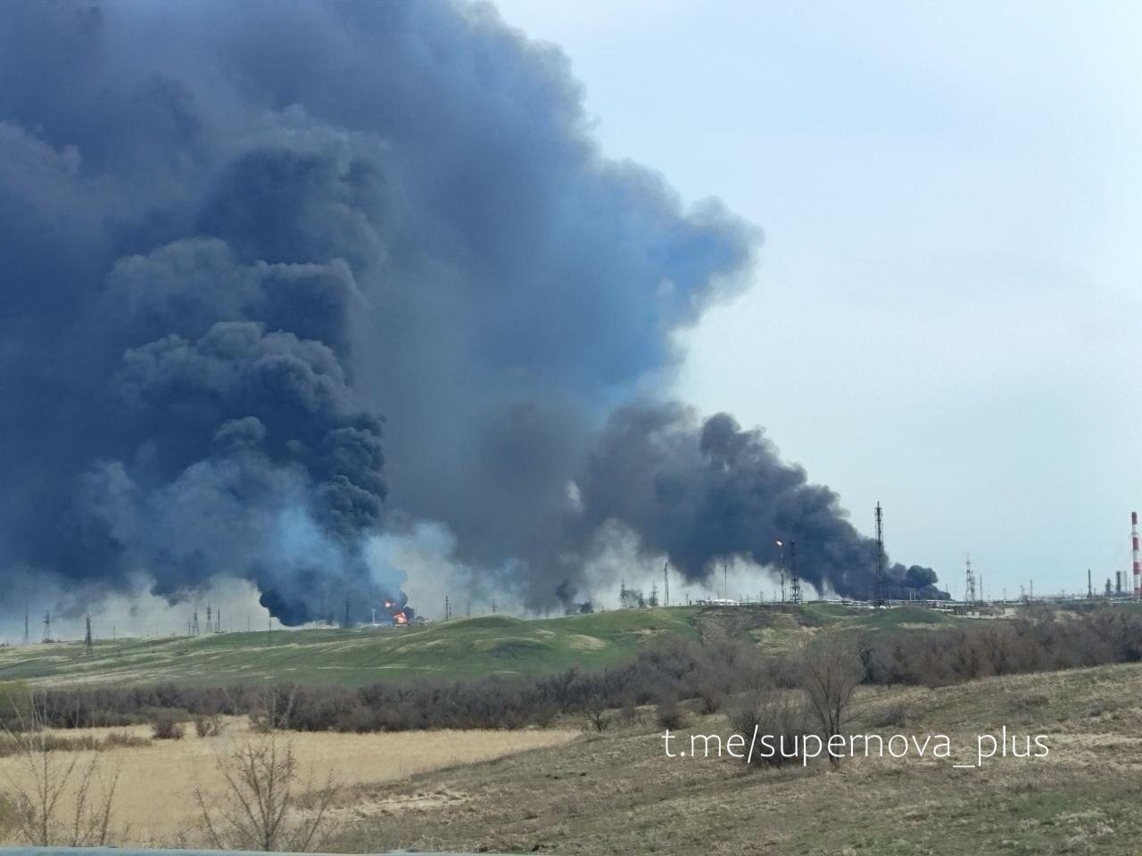 >Right now, three oil refineries are burning simultaneously in Russia. Novokuybyshevsk and Syzran are burning after tonight's attack, and Tuapse, on the video, is burning for the third day after the last attack.