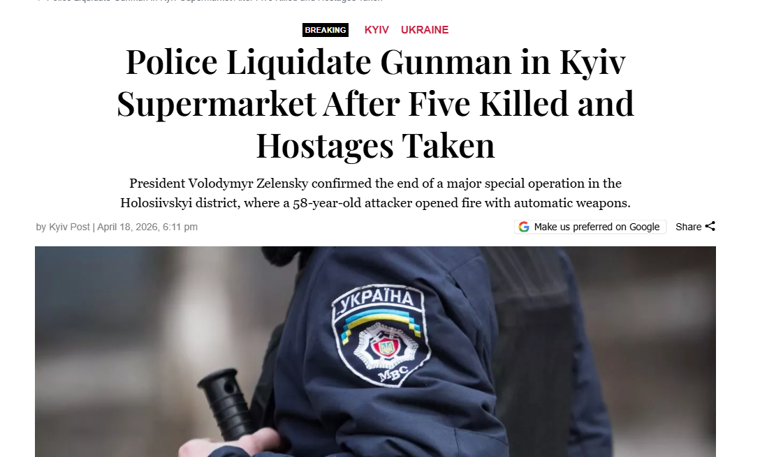 >GUNMAN ON THE LOOSE in Kiev — police say at least 1 killed, manhunt underwayhttps://x.com/RT_com/status/2045507273942847775This is becoming more common.