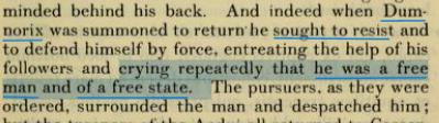 >The Gallic chieftain Dumnorix, literally "king of the world" in Gaulish, of the Aedui tribe, is depicted holding a severed head on a silver coin (first half 1st century BC)>The last words of Dumnorix are recounted in the book V of the Gallic war. >The Gallic chieftain was killed by cavalrymen sent by Caesar, while trying to resist and shouting that he was a "free man of a free state".Based and freeman of the land pilled