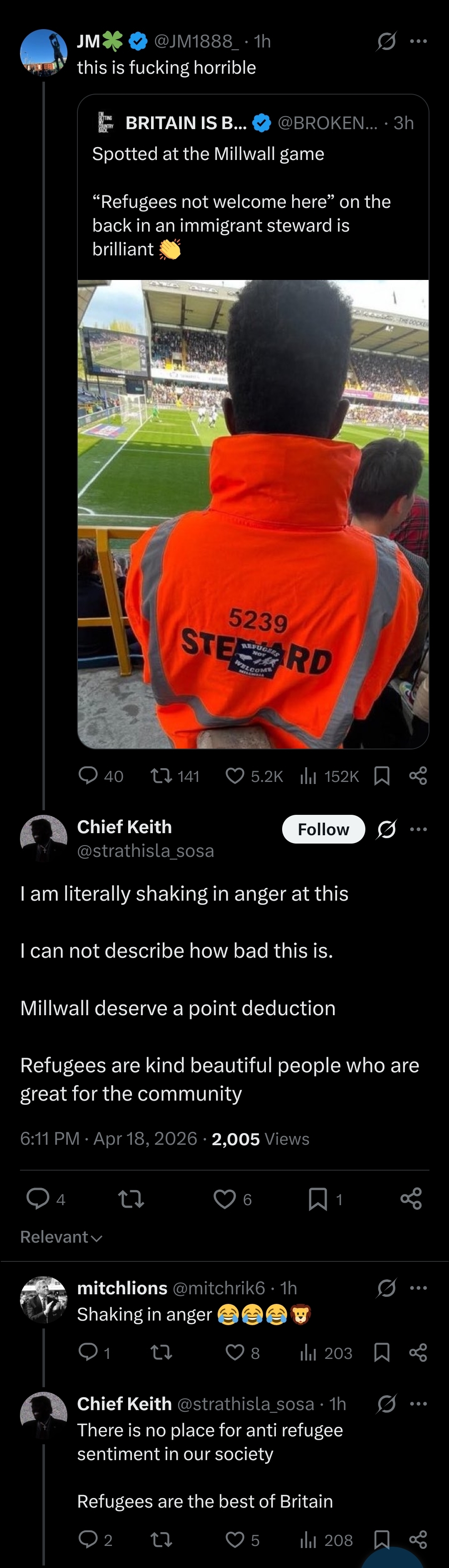>>533401408Could have just said>Maybe don't pick on refugees, ladsBut went with>Refugees are the best of BritainWew.