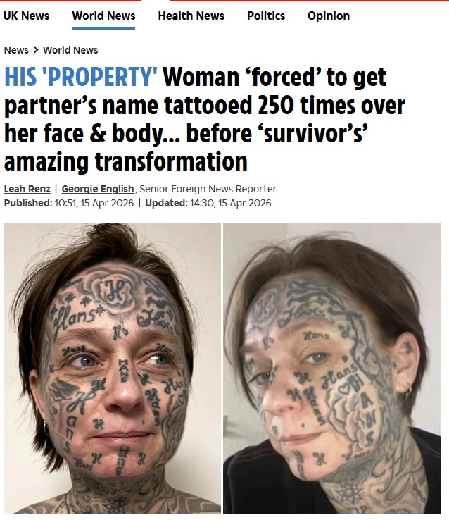 https://www.thesun.co.uk/news/38821549/woman-tattoo-face-body-survivor-transformation/A Dutch woman was forced to have her boyfriend's named tattooed 250 times all over her body. As you can see, the guy's name is Hans....Why are Dutch men so evil?