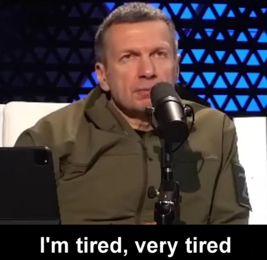 >>533398217nobody watches Solovyov to enjoy themselves or believe him. they have to know what the Kremlin wants them to say they believe. it's just a big fat serving of cope topped with bare minimum hints at truth. instruction material for lying to yourself. remember puccia is mainly at a war with the notions of truth and fact.