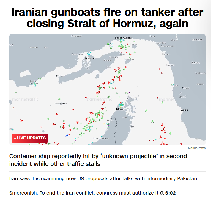 >>533391435I have to think. Two days ago was calm and shadow diplomacy going on with pakistanis military dictator going around.Fake ceasefire in lebanon yesterday but mostly holding. Israelis absolutely seething.Fake opening of hormuz today real closing with jeet ship getting shot at and in panic screaming to the IRGC that they redeemed the list and were allowed to pass.