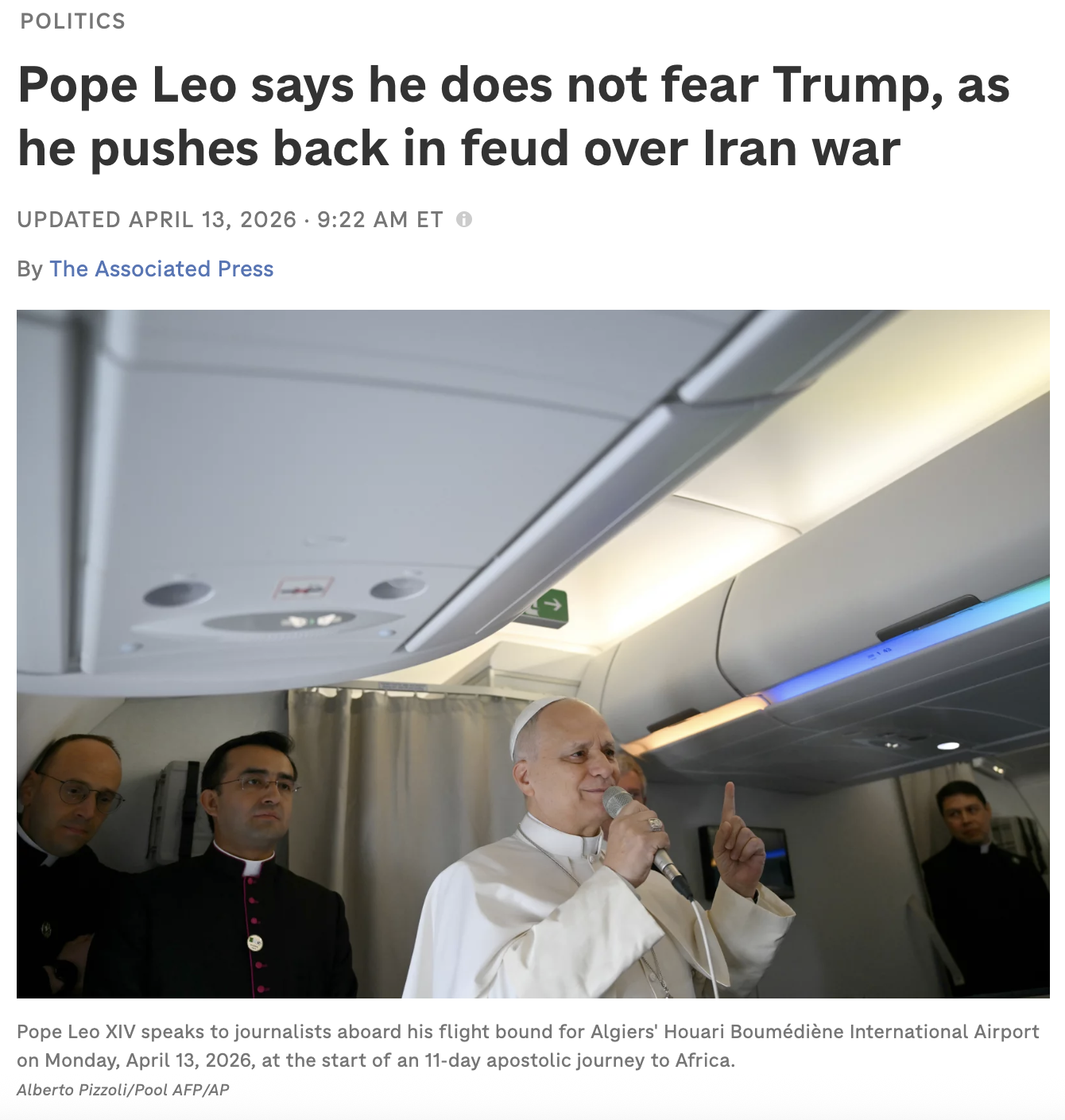 Any "Catholic" who still supports Trump over the Pope, the literal Vicar of Christ, is hellbound. https://www.npr.org/2026/04/13/nx-s1-5783008/trump-pope-leo