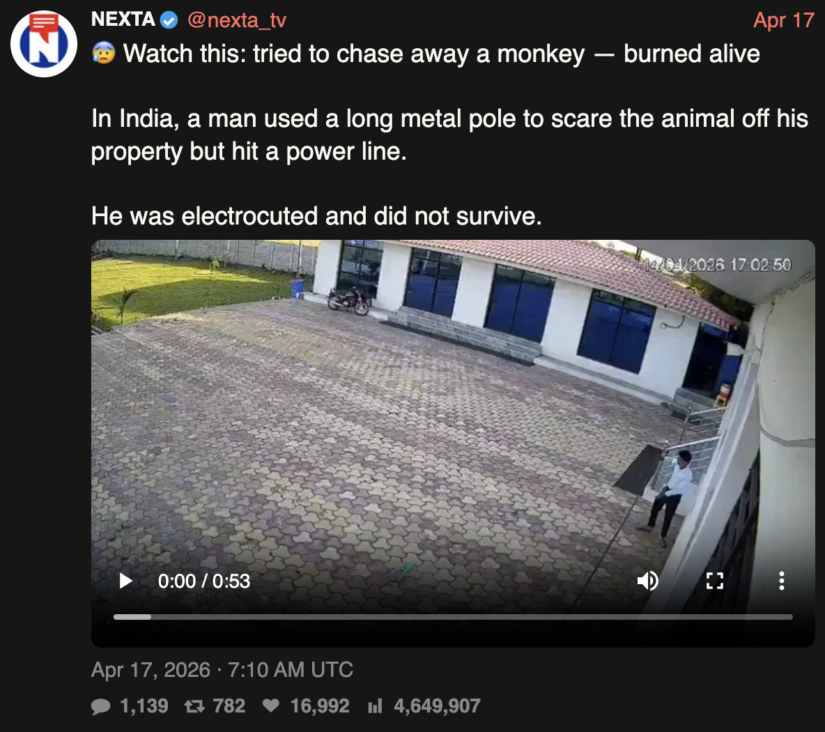 >>533392788It's honestly amazing how many virtual replays of this I've seen coming out of India. I've probably seen thousands at this point. On a fundamental level they somehow just do not understand electricity/power lines. Their biggest natural predators are not even sentient fucking objects.