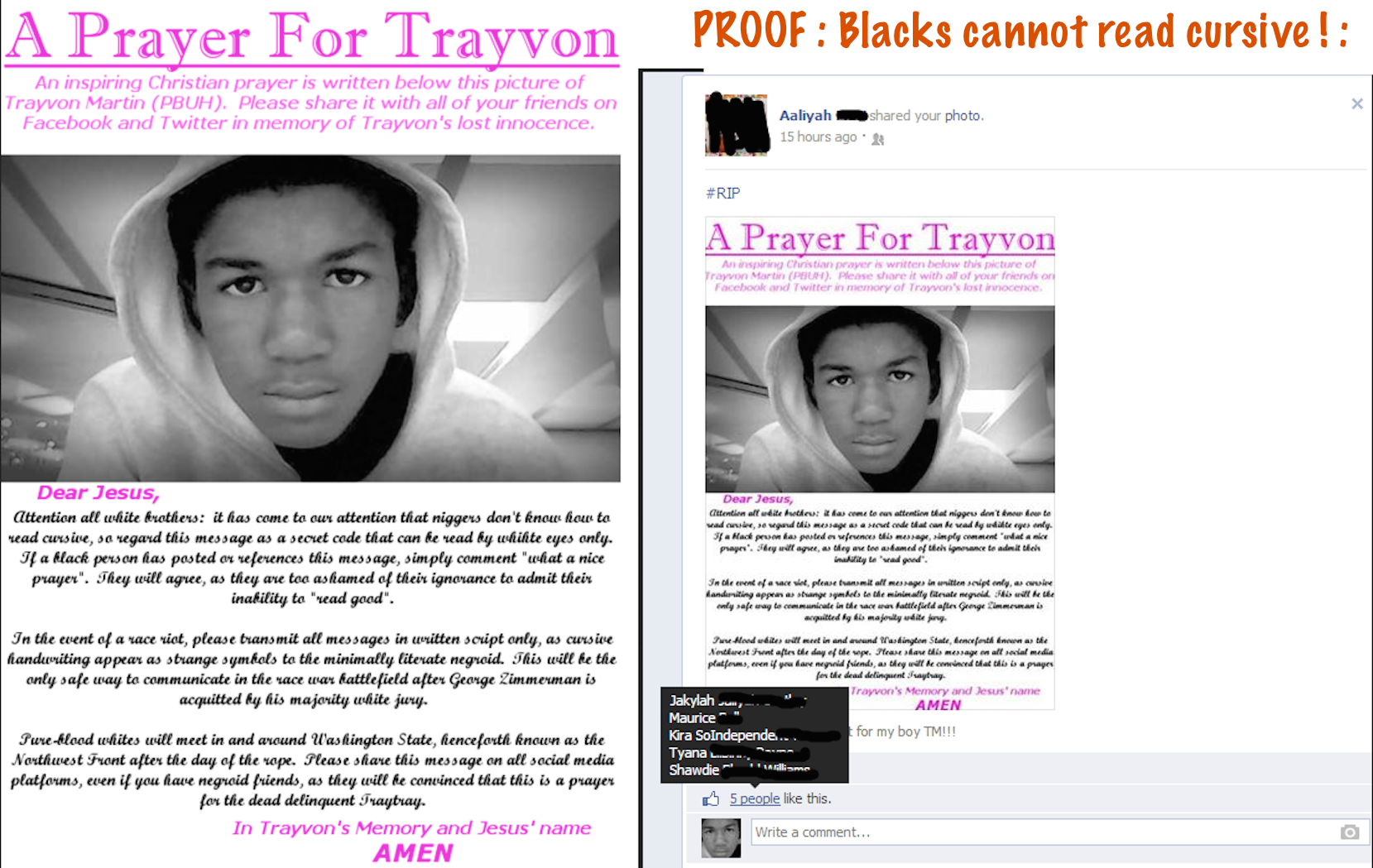 >>533408244It says that Trayvon Martin is in heaven after attempting to kill a mexican and getting shot for it. Rest In Peace, Trayvon!!!!!