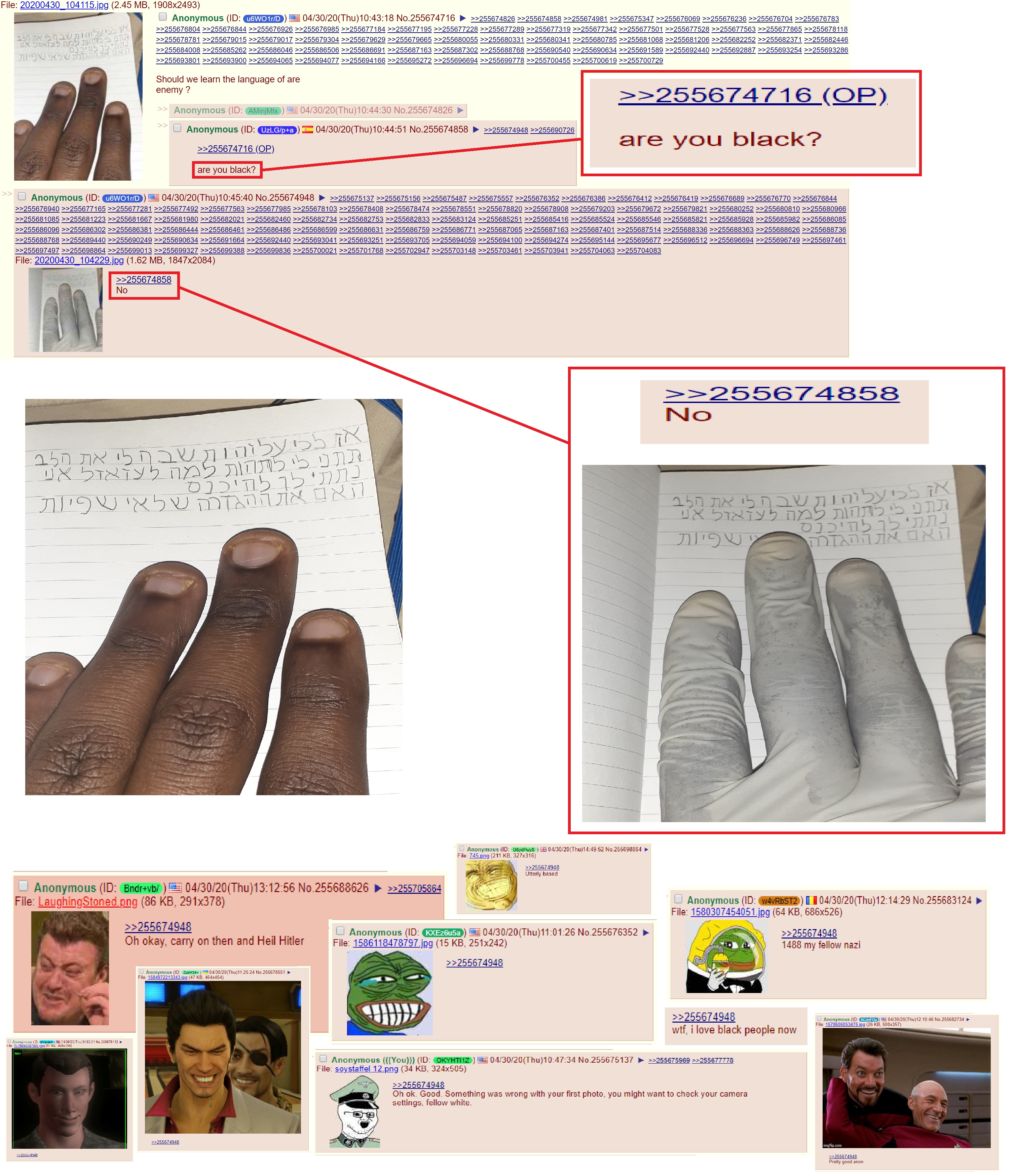 >>533395836If you save one of these pictures and share them on social media, they know you are /pol/ visitor.
