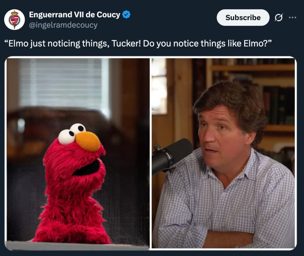 >>533397498There's no way cucker tarlson said that. Why do people shop fake tweets from lame celebrities to make them look based? Why not just tweet it yourself and take credit for the post?