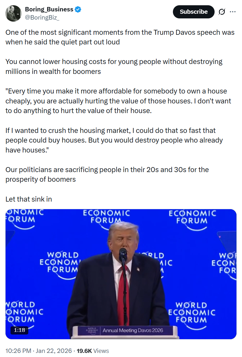 >>533399745Maybe you live in an area where it's different. I guarantee homes can't be prohibitively expensive there if that's the case.Maybe you are not intentionally lying, but you're unknowingly talking about land which is already bureaucratically designated as legal to build a home on, so everything is easy if you have that. But that land is rare and highly exclusive.>Every adult I know owns their own home, or could do but chose to rent for quality of life reasons. What exactly do you do for work?Professional gooner>>533399764Kek, what an idiot, hmmm what regulations?? I don't know, limits as to where people can build a home? So land where you can do that and the bureaucrats wont send armed men to tear it down is RARE, EXCLUSIVE and costs big €€€? You literal JEW