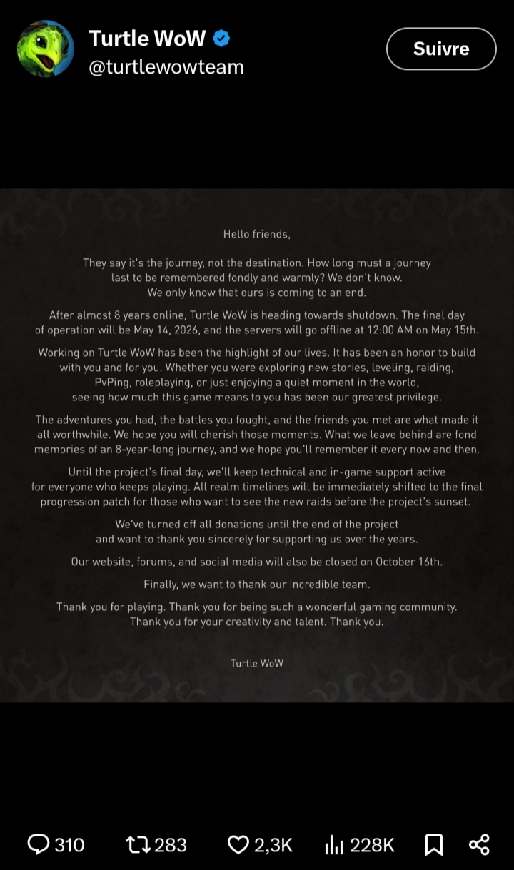 >>533400152turtle wow was dogshithc-wow server is far better