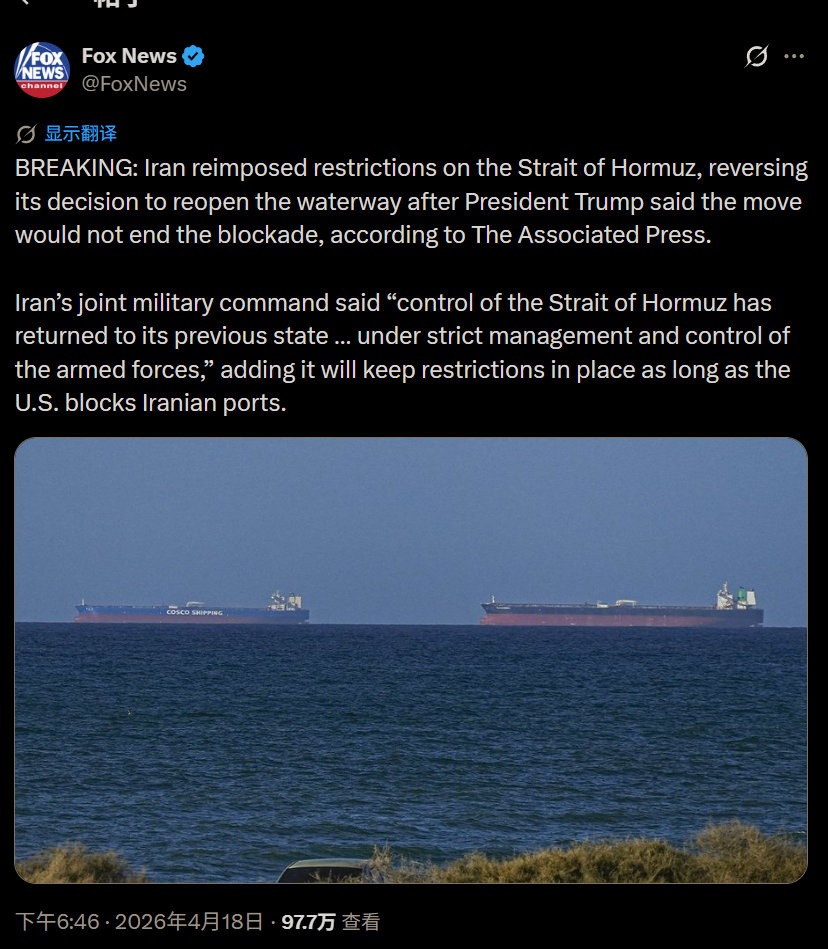 "Iran’s Revolutionary Guards said the continuation of the U.S. blockade was a violation of the ceasefire agreement. In its statement on Saturday, it warned that no vessel should move from its anchor point in either the Persian Gulf or Sea of Oman, saying that approaching the Strait of Hormuz would be seen as “cooperation with the enemy.” Those vessels, it said, would be targeted." -- NYT