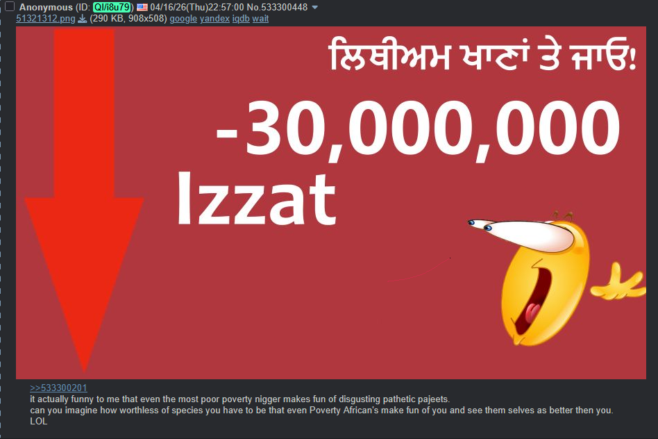 >>533403005i thought this fucking retard had the strait open again.do mutts have any izzat left or nah.