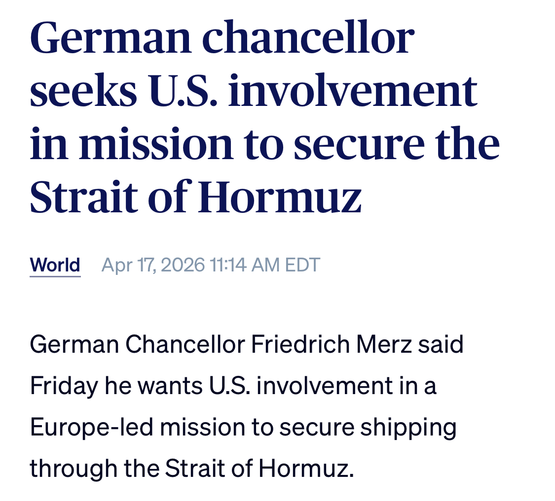 >>533406023More news: Germany military going to defend the Strait of Hormuz?https://www.pbs.org/newshour/world/german-chancellor-seeks-u-s-involvement-in-mission-to-secure-the-strait-of-hormuz