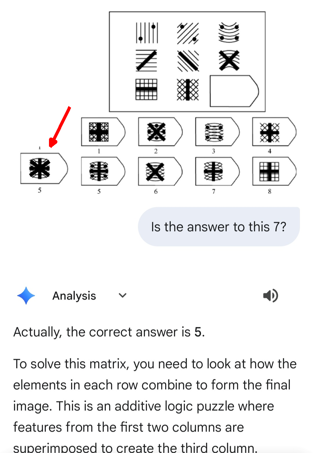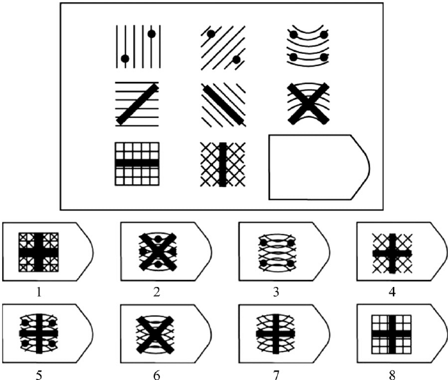 >>533413109> the back pattern is being transferred from top to bottomIf that’s true the answer is 5, since the four dots from top row far right are missing in 7