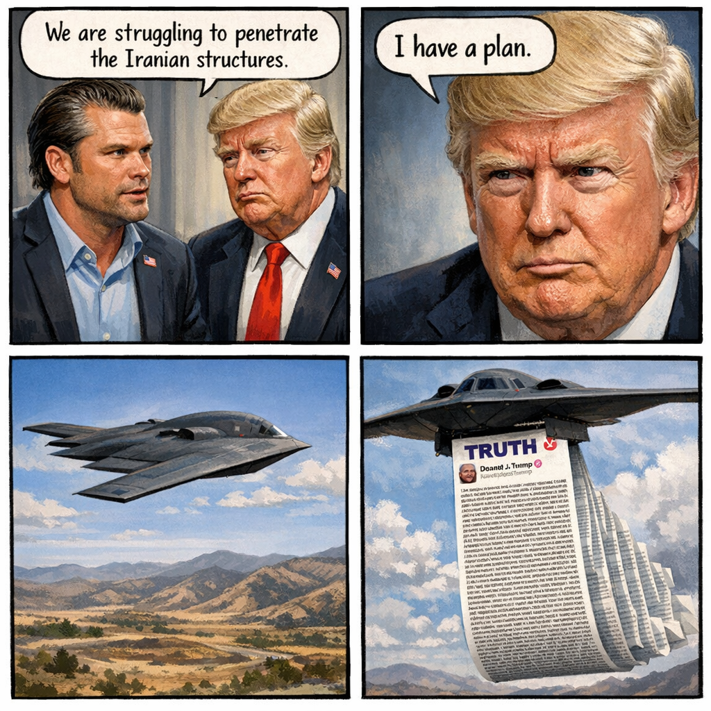 Real talk what can we even hit that we haven't hit already? This seems like an absolute failure. You could maybe try GBU 57s on the missile sites, but I'm fairly certain Iran thought ahead on that one. We're not out of standoff munitions but we're not exactly stocked anymore. There were 15000 targets and you just gotta wonder how many of those were smart bombs