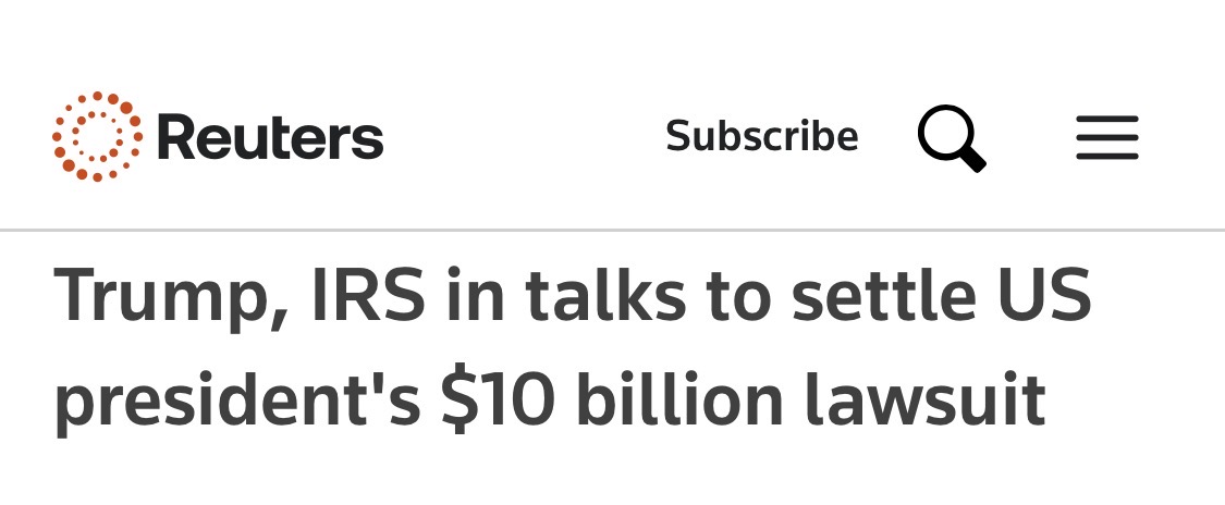 >>533415238Here’s where that money will be going. MAGA scum are totally ok with this.Traitorous insanity.https://www.reuters.com/legal/government/trump-irs-talks-settle-us-presidents-10-billion-lawsuit-2026-04-17/