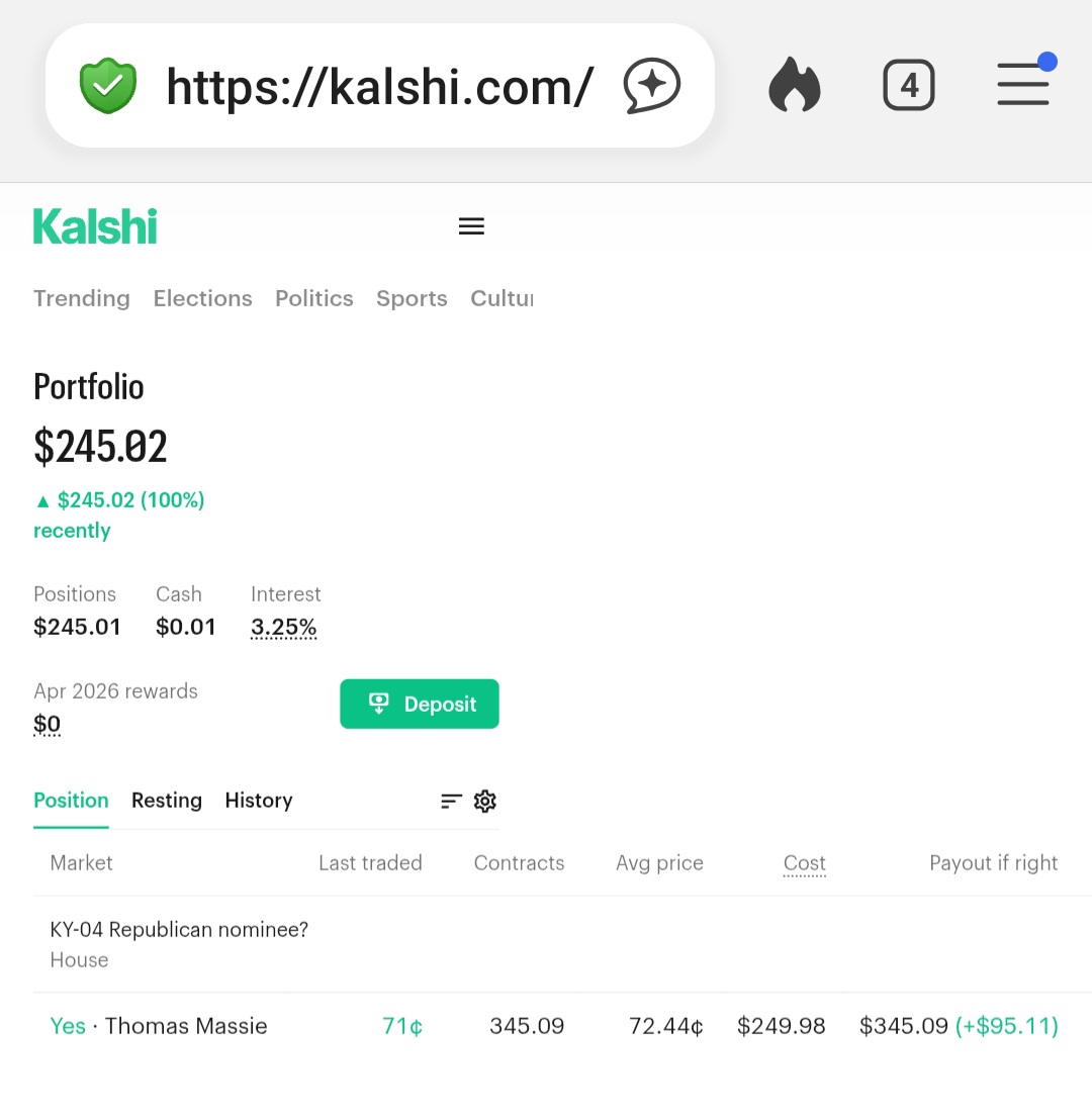 >>533418825>I'll throw in a bet on Massie just so you can eat shit win he wins his primary lolokay, here you go:https://kalshi.com/markets/kxky4r/kentucky-4-republican-primary/kxky4r-26looking forward to your betting slip!