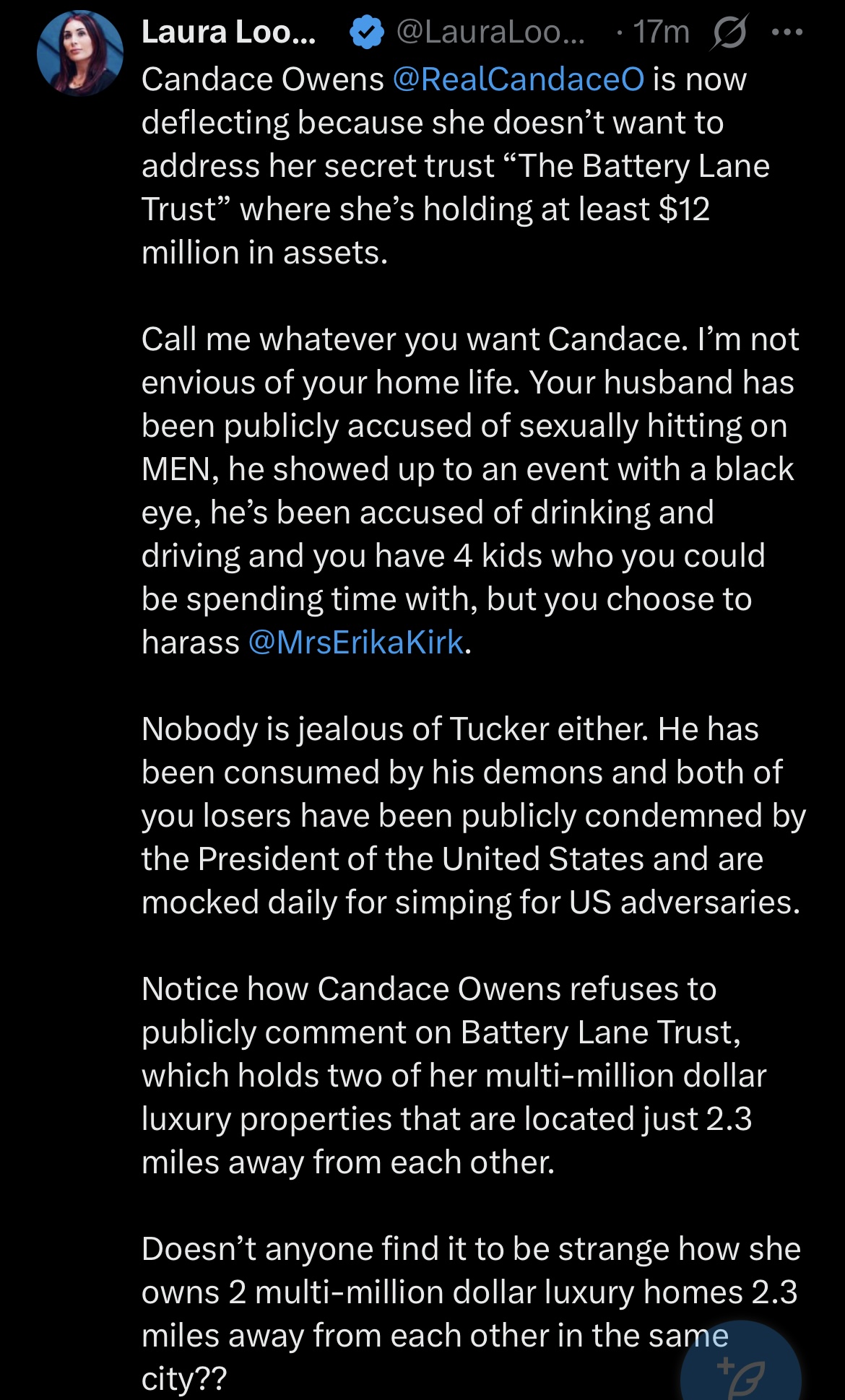 >Secret separation from her husband>A secret trust worth over ten million in hidden assets>Owens is apparently trying to conceal her net-worth because of the lawsuit from Macron for claiming his wife is a tranny https://x.com/RealCandaceO/status/2045654478880194957