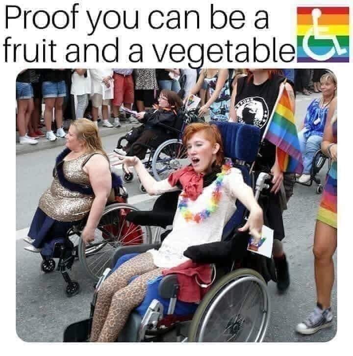 The thing is, she isn’t retarded, she’s got cerebral palsy, so her thought process is unhindered, and she chose this willingly, unless she’s being coerced by the two people with her (parents? They look a bit young for that). She’s just another gullible twat convinced by the internet that she needs to mutilate herself in order to feel happy, and she deserves everything she’s got coming to her. I do like the fact she’s got a nice big table attached to her wheelchair though. I’ve never seen a spaz chariot with one of those installed before.