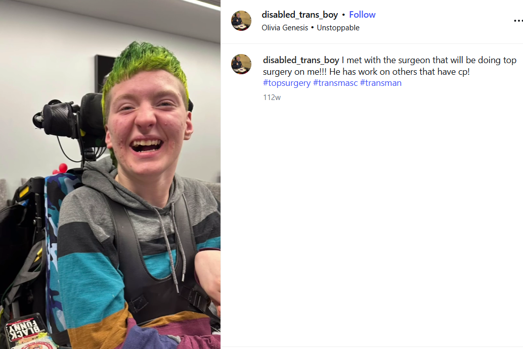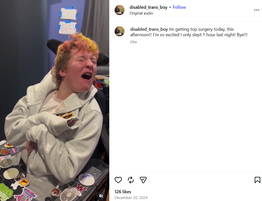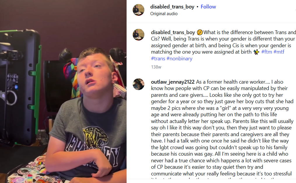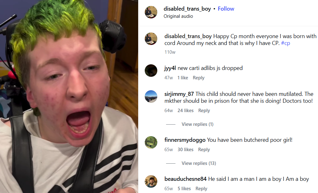 leftists are quick to abort unborn children for minor shit but they'll keep miserable people like this alive and even encourage them to damage themselves
