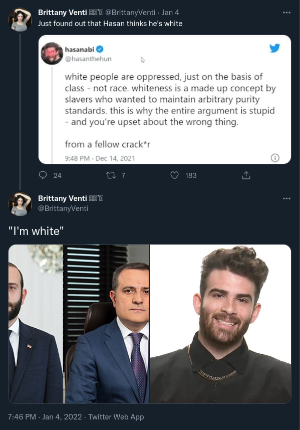 >>533437835There are literally laws against Whites in America. What is he smoking?>>533438829Turkey has some White-looking people here and there because all kinds of different people settled there historically.