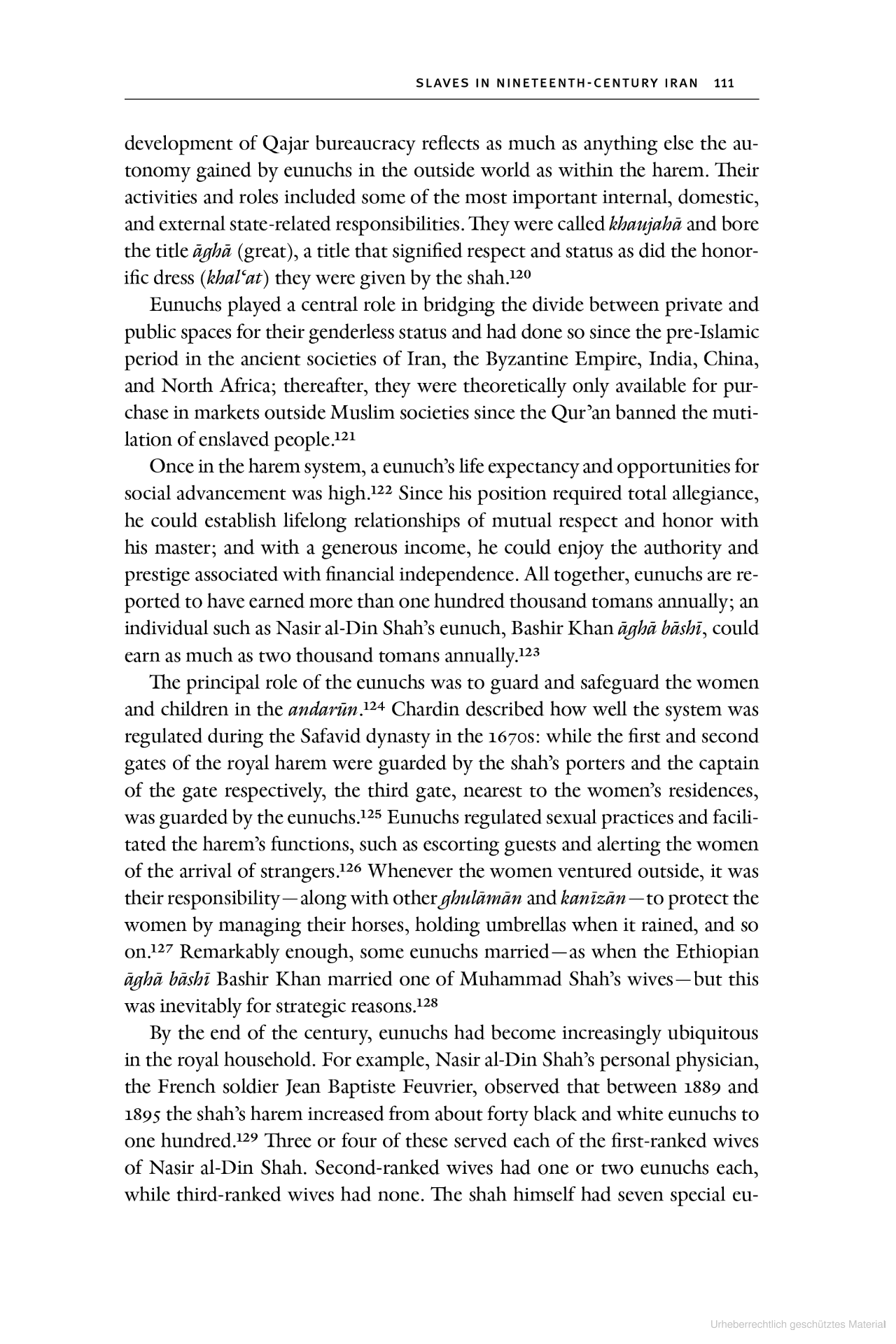 >>533443955This says Abyssinian (Ethiopian) and Zanzibari (zanj) eunuchs guarded the inner harem in Qajar Iran while Georgians guarded the outer harem, but under the Safavids it was mostly Georgians and there were also Indian Malabari eunuchs who were classified as white.Georgians were Christians from the Caucasus.https://www.asriran.com/fa/news/447603/%D8%B2%D9%86%D8%AF%DA%AF%DB%8C-%D9%85%D8%B1%D8%AF%D9%85-%D8%AF%D8%B1-%D8%AF%D9%88%D8%B1%D8%A7%D9%86-%D9%82%D8%A7%D8%AC%D8%A7%D8%B1-%D8%B9%DA%A9%D8%B3http://realhistoryww.com/world_history/ancient/Images_Elam/Qajar_pics.htmhttps://mobile.twitter.com/africaforummhttps://jewishjournal.com/commentary/columnist/320524/are-we-ready-to-talk-about-slavery-in-the-middle-east/http://sahebkhabar.ir/news/10453917/%D8%AA%D8%B5%D8%A7%D9%88%DB%8C%D8%B1-%D9%86%D8%A7%DB%8C%D8%A7%D8%A8-%D8%A7%D8%B2-%D8%A8%D8%B1%D8%AF%D9%87-%D9%87%D8%A7%DB%8C-%D8%A2%D9%81%D8%B1%DB%8C%D9%82%D8%A7%DB%8C%DB%8C-%D8%AF%D8%B1-%D8%AF%D9%88%D8%B1%D8%A7%D9%86-%D9%82%D8%A7%D8%AC%D8%A7%D8%B1%DB%8C%D9%87-%D8%AF%D8%B1-%D8%A7%DB%8C%D8%B1%D8%A7%D9%86http://sahebkhabar.ir/news/10463013/%D8%A8%D8%B1%D8%AF%D9%87-%D8%AF%D8%A7%D8%B1%DB%8C-%D8%AF%D8%B1-%D8%B2%D9%85%D8%A7%D9%86-%D9%82%D8%A7%D8%AC%D8%A7%D8%B1-%D8%AA%D8%B5%D8%A7%D9%88%DB%8C%D8%B1https://newsin.ir/fa/content/9033048/%D8%A8%D8%B1%D8%AF%DA%AF%D8%A7%D9%86-%D8%A2%D9%81%D8%B1%DB%8C%D9%82%D8%A7%DB%8C%DB%8C%E2%80%8C-%D8%AF%D8%B1-%D8%AD%D8%B1%D9%85%D8%B3%D8%B1%D8%A7%DB%8C-%D9%86%D8%A7%D8%B5%D8%B1%DB%8C-%D8%B9%DA%A9%D8%B3.htmlhttps://hr.sott.net/article/8198-Malo-poznata-istorija-15-stanovnistva-juznog-Irana-su-potomci-africkih-robovahttps://klassekampen.no/utgave/2021-07-28/haremets-kastrerte-vokterehttps://www.piankhy.com/2017/09/12/prince-iranien-entoure-de-huit-jeunes-eunuques-africains-dautres-photos/https://twitter.com/threadreaderapp/status/1306913398123376641https://mobile.twitter.com/Am_krei0e/status/1306962476106424322https://www.amazon.com/-/de/Pedram-Khosronejad/dp/0999480103