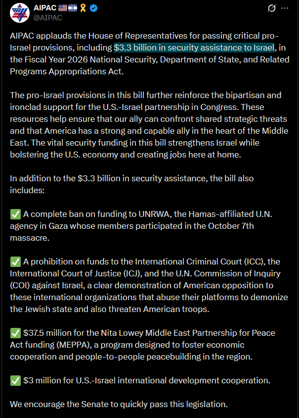 >>533437685>3.3 billion more in aidhttps://x.com/AIPAC/status/2011568638378082387