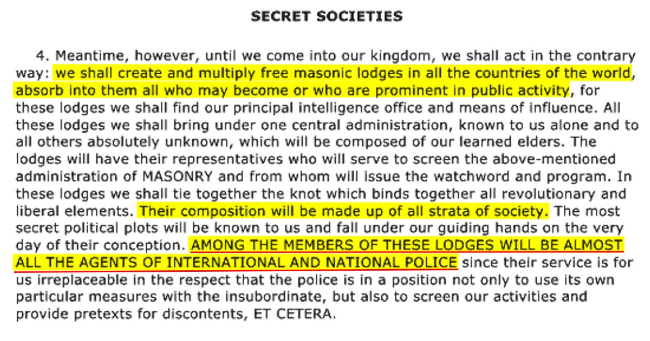 >>533438789>One of the many triumphs of our Freemasonry is that those Gentiles who become members of our Lodges, should never suspect that we are using them to build their own jails