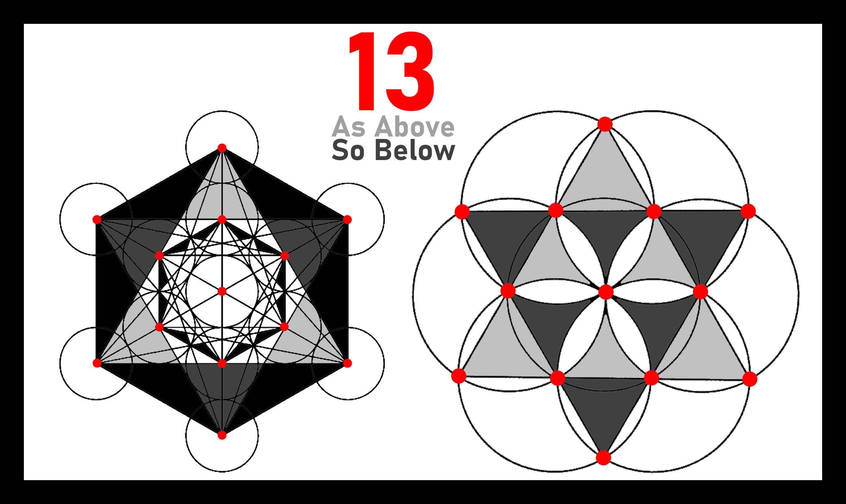 Significance of 13.The central points of the 13 circles that comprise the 'fruit of life' and contain 'metatron's cube.As well as the 13 intersections of the 7 circles of the 'seed of life.