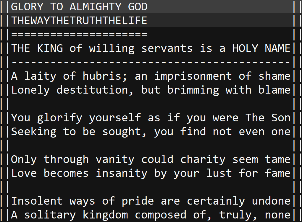>>533436649>>533441450You who call yourself a Jew,Turn your ear and hear anew!You made it a Book of Abraham;But, is it not of I AM THAT I AM?For a line you look;you track and trace,instead of seeking out HIS FACE!Oh, you lost! You house of sheep!Hear ye not The Shepherd's Bleat?Search The Texts to find HIS NAME,for if you don't you hold the blame.THE KING has come!CHRIST IS THE WAY!Who do you choose to serve this day?---You speak your prayer to rock and fodder.The stones have now become your father.Do you trust your words and war willmove those blocks which you adore?Oh, if Elijah saw you now,He'd laugh; cry; disavow.---Hear ye; Ye hypocrites!Stop your crying!Stop your fits!Your wayward way is to:The Pit.That western wall,The one you kiss;That place you mourn, grovel, and hiss;Is that your GOD, or is I AM THAT I AM?