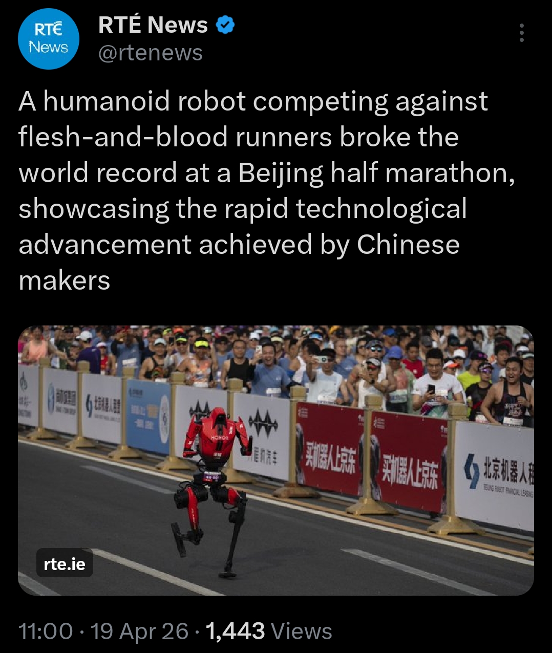 okay? but a skateboard is also faster than a running human, it's not a huge surprise that machines are faster than humans, it's not like humans are particularly fast even among animals, I imagine a cat can outrun humans