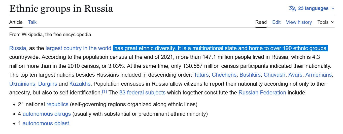 Russia is the worst """melting pot""" in the entire world my retarded friends.