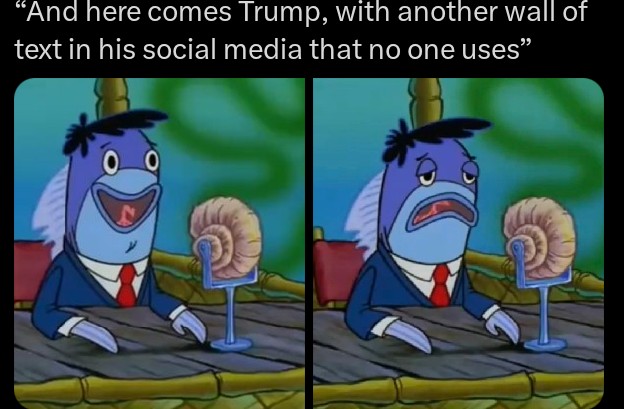 >>533446190>>533446196>>533446382The image that ended a presidency. I literally cannot see a single trump tweet anymore without it popping up in my head rent free. There is no coming back from memethic power like his one. Rip lil donnie.Interesting how this is the one meme of trump that seems to have sticked. Call him orange jew, miga, small hands, drumpf ... it runs of him and his fanboys like water. But call him a sad old man typing shitty tweets and it hits home perfectly.