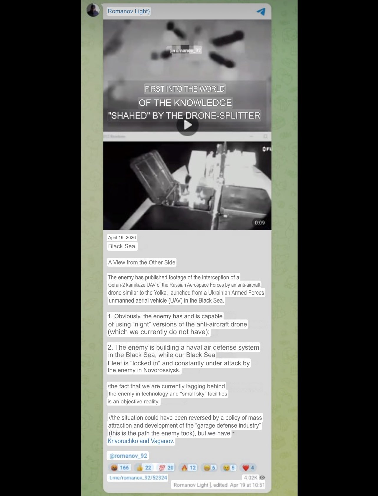 Previous: >>533435851Day 1,515 – Daily assessment: understandingwar.org/analysis/russia-ukraine/#research▶Latest>Smoooking accident at the Fosagro chemical plant in Cherepovets>Szijjártó (orbán's FM) has barricaded himself with some of his closest colleagues and is shredding documents related to the sanctions on russia and any other evidence of treason>Hungarian PM candidate Magyar talks of 'pragmatic' ties with moscow but clearly sides with Ukraine on war: russia is the aggressor in the war, Ukraine has the right for self determination, Ukraine's territorial integrity must be respected, etc., he is happy with the €90bn Ukraine deal as agreed in December last year (which included an opt-out for Hungary)>Magyar does not support Ukraine's fast-track EU accession but he will do everything in his power to diversify oil and gas sources and routes for Hungary (=less reliance on russia)>The kremlin will not congratulate Magyar on his election victory in Hungary; it is an unfriendly country - Peskov>Opposition party TISZA gains 2/3 supermajority in the Hungarian parliamentary election (orbán on suicide watch)>After 16:00 and by day's end, 1,723 russian ceasefire violations were recorded>Ukraine reaches a milestone: making ‘China-free’ drones>Ukraine surpasses russia in deep-strike drone attacks>russia’s frigate Admiral Essen can no longer fire Kalibr missiles after Ukrainian strike, t. SBU>Dronehits chemical plant in Voronezh region; operations suspended>Ust-luga struck again>russian state propagandists that predicted a 3day SMO now admit that russia is doomed to defeat▶Telegramrentry.org/telosint2023t.me/ukr_pics▶Intelt.me/DeepStateENodin.tradoc.army.mil/WEG (equipment explorer)ukr.warspotting.net (visually confirmed losses)▶Mapsdeepstatemap.live/enliveuamap.com/en▶DISPOSABLE SOLDIER (diary of a RU mobik)TOURS 1-4: files.catbox.moe/mpcw7p.zip▶12 min of TZD in one ditch (Pokrovsk area) - 28 killedfiles.catbox.moe/sxbxfb.mp4