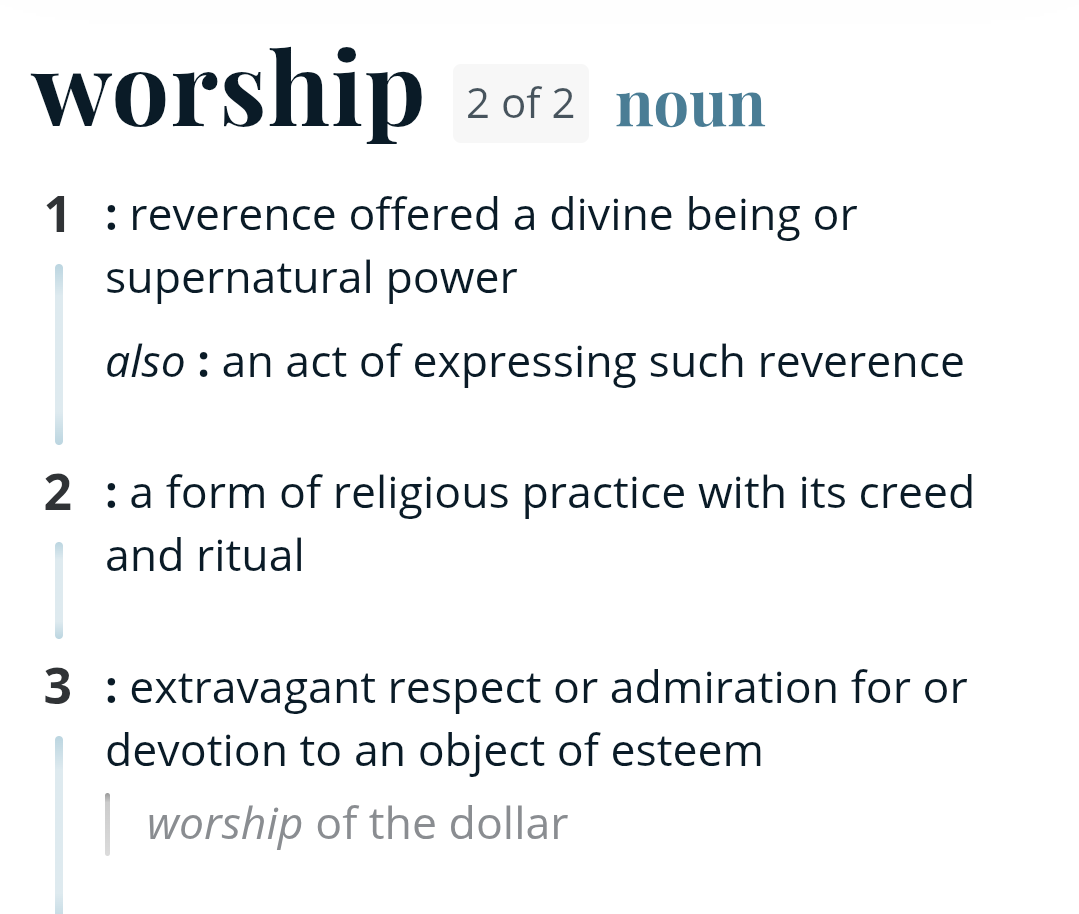 >>533450702>Worship means "to prioritize".show me a modern dictionary with that definition. you can't.