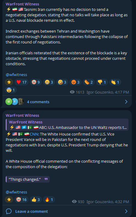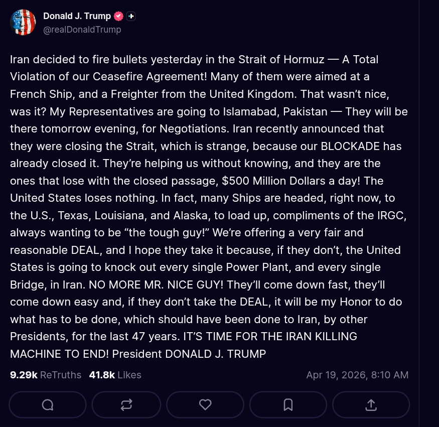 >A new round of US–Iran talks is expected to take place in Islamabad, Pakistan, on Monday, APR 20th, according to CNN, citing Iranian officials.