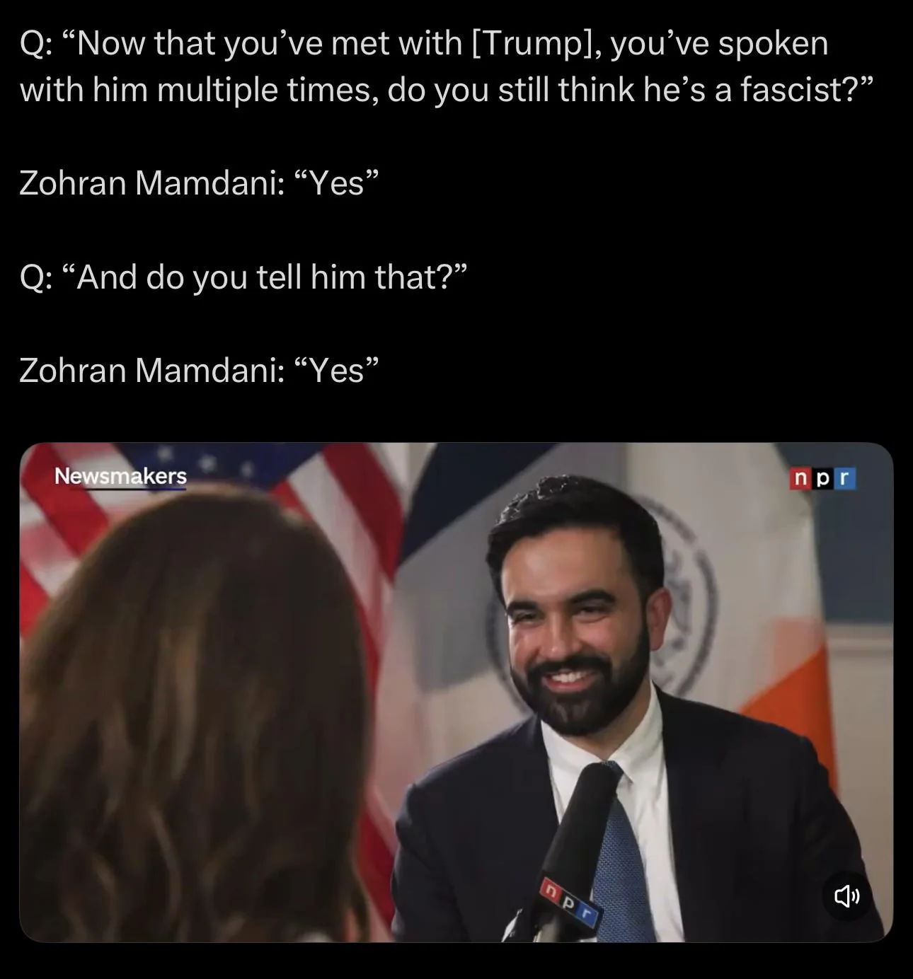 Mamdani wants to see the system burn, he wants America to die, that’s why he’s calling Trump a fascist, smiling, and doing nothing about it