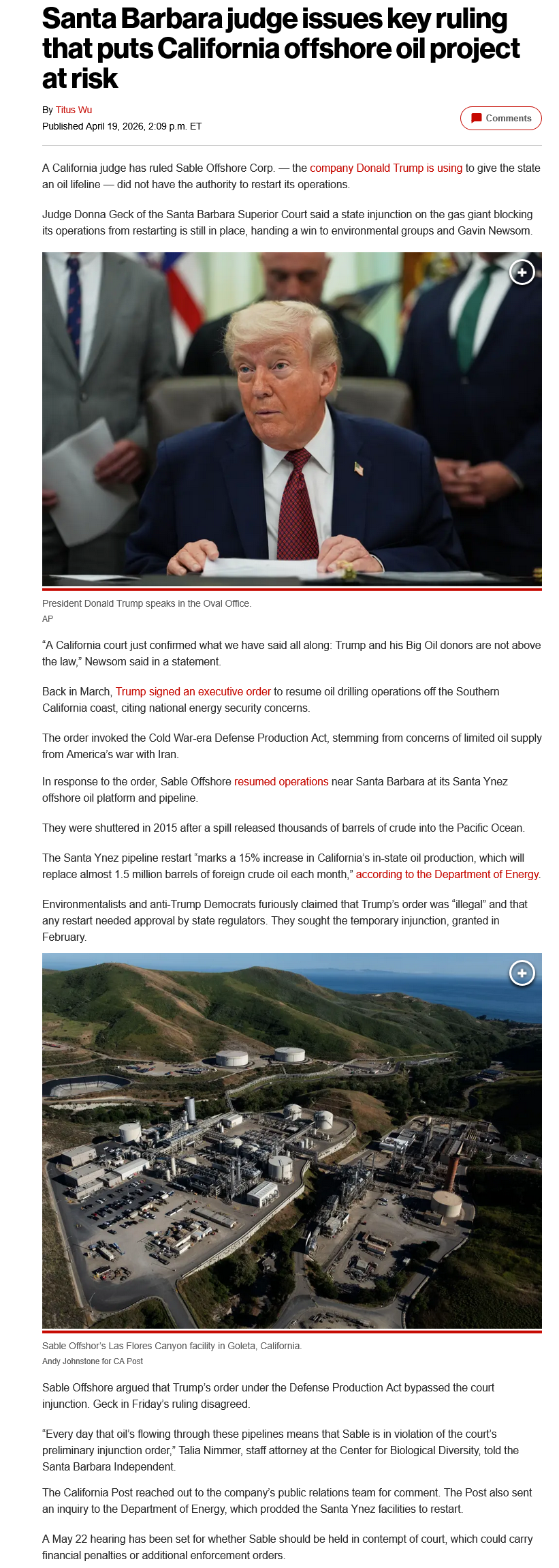 >>533465007Where are you that gas is $3.89 at Costco? Really?>>533463346§2071. Priority in contracts and orders(a) Allocation of materials, services, and facilitiesThe President is hereby authorized (2) to allocate [...] and facilities in such manner, upon such conditions, and to such extent as he shall deem necessary or appropriate to promote the national defense.[...](c) Domestic energy; materials, equipment, and services(1) Notwithstanding any other provision of this Act [sections 2061 to 2171 of this Appendix], the President may, by rule or order, require the allocation of,[...] equipment, and services in order to maximize domestic energy supplies if he makes the findings required by paragraph (3) of this subsection.(2) The authority granted by this subsection may not be used [...] unless(A) such materials, services, and facilities are scarce, critical, and essential-(i) to maintain or expand exploration, production, refining, transportation;(ii) to conserve energy supplies; or(iii) to construct or maintain energy facilities; and(B) maintenance[...] cannot reasonably be accomplished without(3) During any period when the authority conferred by this subsection is being exercised, the President shall take such action as may be appropriate to assure that such authority is being exercised in a manner which assures the coordinated administration [,,,]The Judge Is Wrong.If you need it donated to the USG, then have them donate the scrap metal of the refinery, have the USG replace a pipe, and then offer the original owner contract to upkeep for costs and let them keep the byproducts to discharge as fit.CA stupid bitches need to eat a fat dick.
