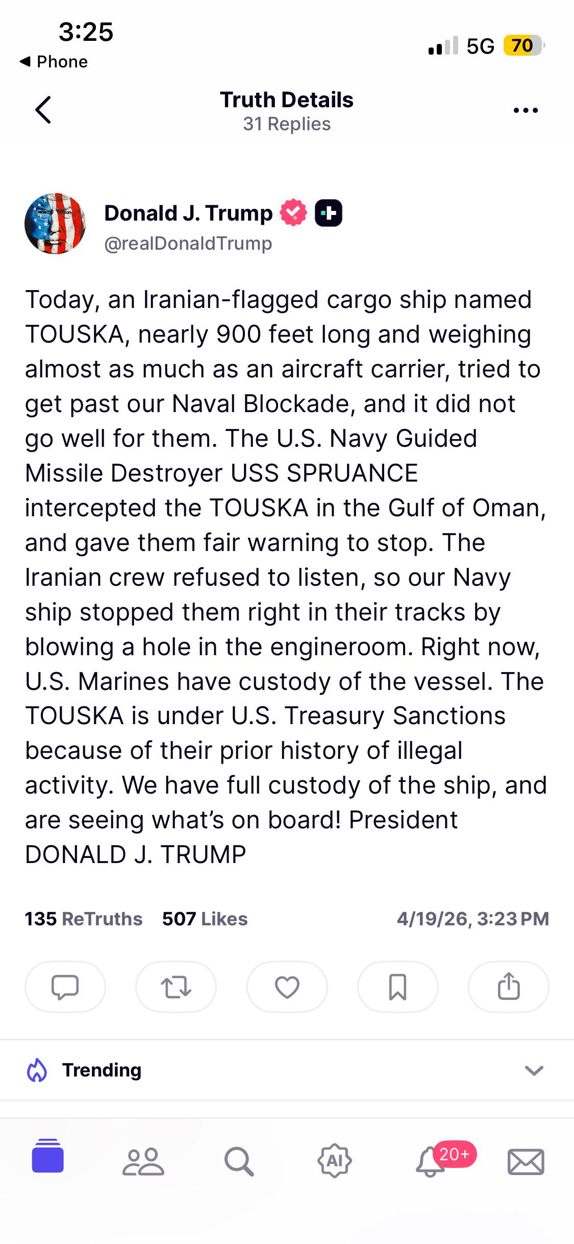 You know trump is lying, right? We would land troops on the ship, not blow a hole in the engine room.