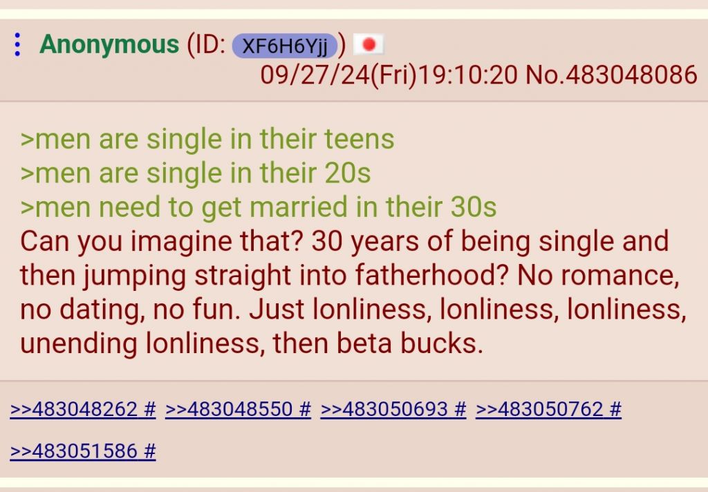 It’s as if they can’t fathom the fact that I will be alone my whole life. Does this scare them? It's exhausting having these conversations at every family gathering, and I have a cousin’s wedding to attend next month. You should see the look on their faces when I mention that I do not want to get trapped into paying child support or alimony. This is political because there’s a growing number of men who are becoming volcels and that will have serious repercussions for society.