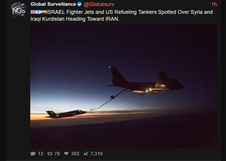 > Fighter jet activity above Nasiriyah, southern Iraq.> Simultaneously, non-Iraqi fighter jet activity heard throughout Iraqi Kurdistan. A USAF KC-46A "Pegasus" aerial refueling plane is also active above Iraq.