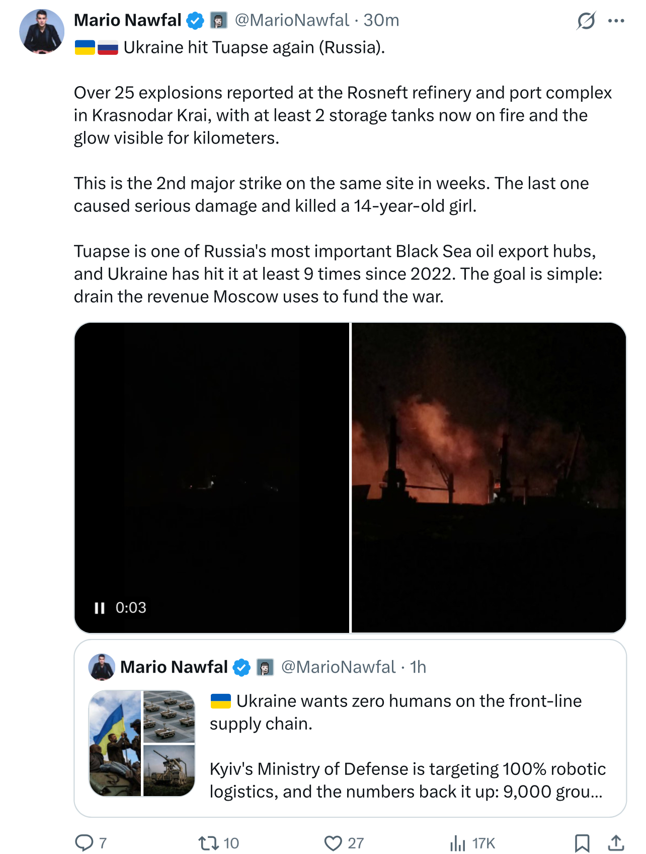 okay it got more confusing>US troops launched the unprovoked attack on the Iranian container ship Toska, which was peacefully sailing from China to Iran through the Gulf of Oman.>“The aggressor United States violated the ceasefire and committed maritime piracy by firing at an Iranian merchant ship in the waters of the Sea of Oman and landing a number of its terrorist marines on the deck of the vessel, disabling its navigation system,”>In immediate response, Iranian forces struck back, targeting several American military vessels in the area with drone attacks.