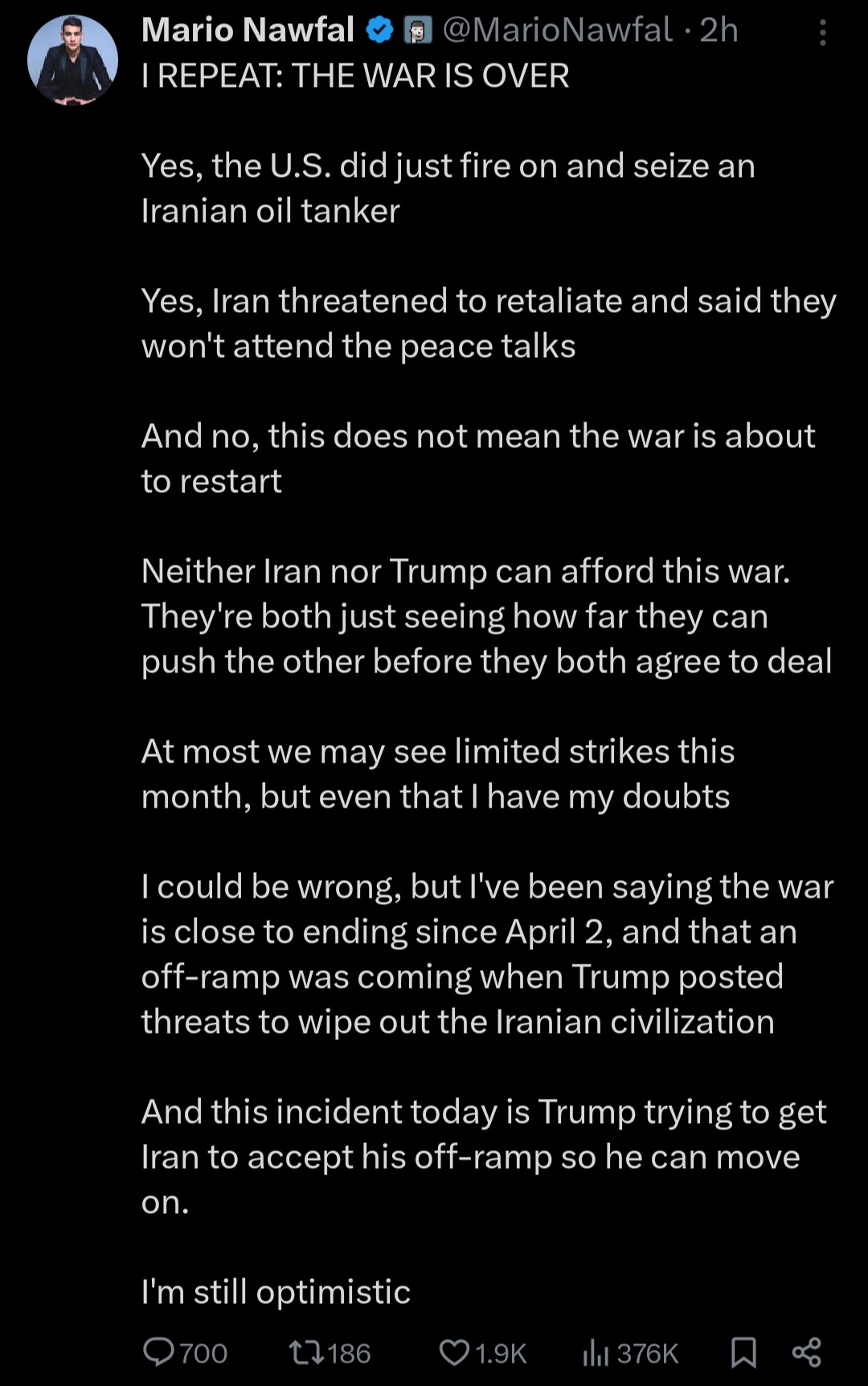 >>533488007https://x.com/ArmchairAdml/status/2045657052832321612where's your source saying something else? giant number of ghost flights with transponders off and no one spotted them taking off or landing?
