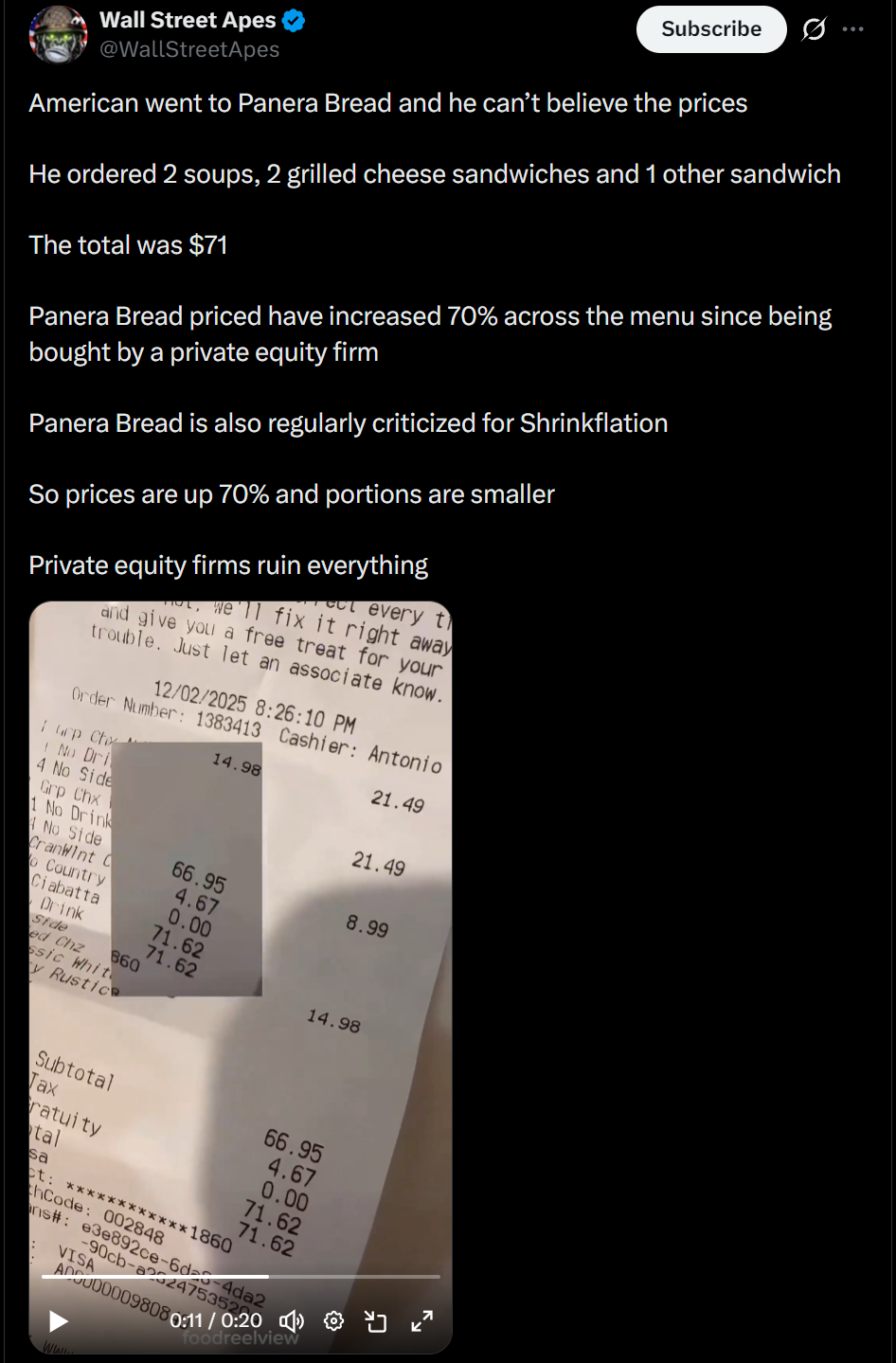 Stop eating there. Why are amerifats so retarded and happy to be ripped off?You can go food shopping and make a better meal at home.