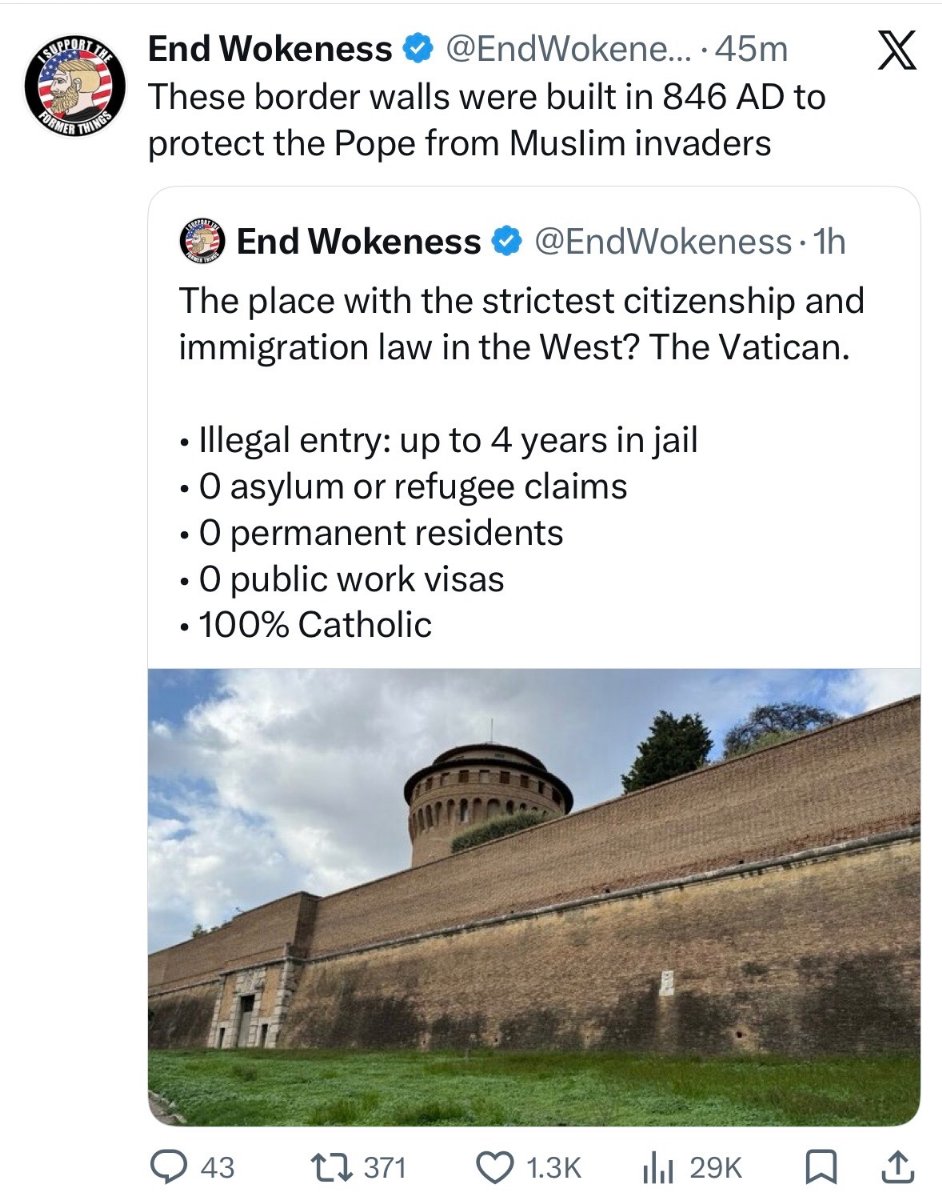 >>533491191>Christ told his apostles to make disciples of all nationsDid he invite more Romans to settle In Judea? No, I don't think he did.Christ was nailed to a cross by foreign migrants and by traitorous Jews who'd taken over his homeland.There's a lesson to be learned there.