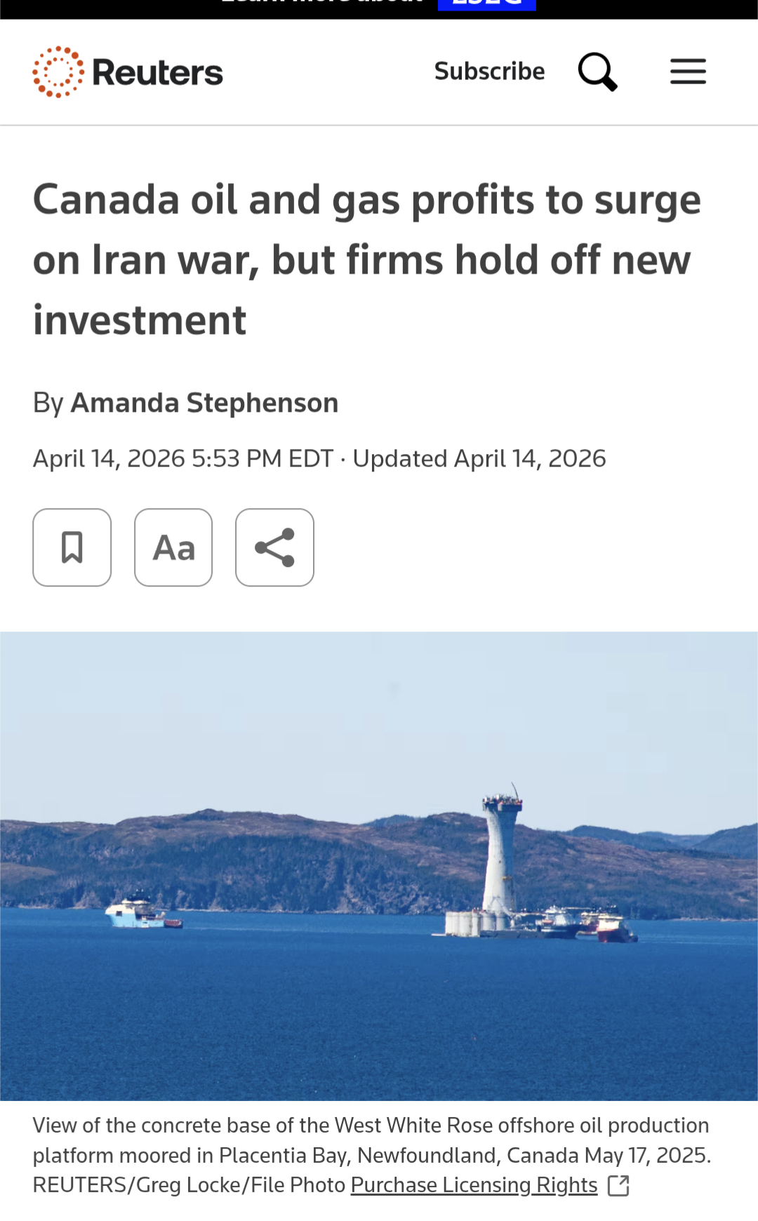 >>533495111Lolhttps://www.reuters.com/business/energy/canada-oil-gas-profits-surge-iran-war-firms-hold-off-new-investment-2026-04-14/