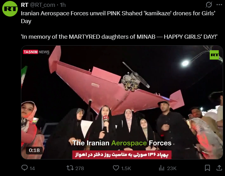 >>533497117>Iranian Air ForceAngry kites>Iranian NavyGlorified bass boats>Iranian ArmyCan't find enough children to use as living shields.Gonna be funny if it happens!>>533497126I'd reckon he'd keep it quiet for now, considering the visit to Xinny the Pooh.