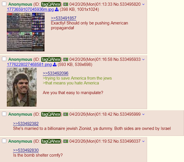 ALWAYS AWOOWE WON 2024 LOL (AND 2020)SNEED AND SEETHE SHILLSGOD PROTECT TRUMPDROP THE HAMMERSMASH THE PLACE TO PIECESPUNCH THE SCORECARDHANG THE RIGGERSJINX THE JABBERSFINISH THE WALLHOLD THE LINENEVER CONCEDEDRAIN THE SWAMPSINK THE CHINKBAN THE TRANSBE KAWAIIDEPOPULATE ELITESWE ARE SUPER ELITESIT'S OKAY TO BE WHITEJUSTICE FOR LORIKILL THE SHILLDON'T BAKE THE CAKEBE BESTHONOR ABEREMEMBER CHARLIEDEFUND THE FEDSALL FEDS ARE BASTARDS (except ICE and Border Patrol)STOMP THE TURTLESTRONGER TIMES NOWBETTER GET YOUR ACT TOGETHERLIGHT THE FUSEPLAY MINECRAFTEAT THE BURGERISRAEL IS NOT AN ALLY (except when killing Iranians!)THIS IS ULTRA MAGA COUNTRYBANKRUPT THE BANKS!WOLFGIRLS FOR TRUMPERS!DUM AND GAY IS NOT OKAYKEEP POSTING THAT FUCKING RACCOONDEPORT THE HORDE!CHRIST IS KINGALLEY CATS FOR TRUMP!FIGHT FIGHT FIGHT!TRUMP FOREVER!7/13 WAS AN INSIDE JOBBETTER WEIRD THAN QUEERALL GROYPERS ARE GAY FEDSPLUG THE LEAKERSRAKE THE LEAFSESCALATE TENSIONSMARS CHUDS UNITEHEIL SYDNEY SWEENEY'S GOOD GENESDONROE DOCTRINEUNLEASH CHANGBIG DICK BED CHEM MAGA ENERGY!>>533493905>>533493940>>533493982>>533494127Awoovening!